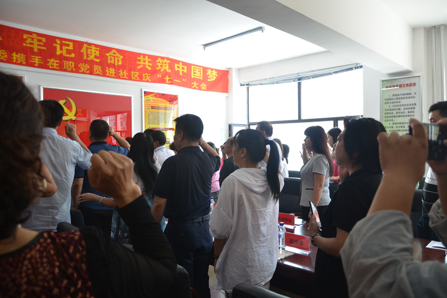 活动中,文化社区全体党员重温入党誓词,面对党旗庄严宣誓,同时激励新入党的同志要严格要求自己,牢记职责和使命,坚定为共产主义事业而奋斗终身的信心和决心。