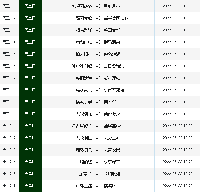 周三001天皇杯札幌冈萨多VS甲府风林2022-06-22 17:00