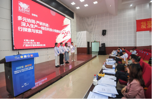 ▲广西兴宁富凤鸡科技小院学生回答评委问题。(郑宇 摄)