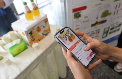 ▲ 丹棱桔橙科技小院的科技成果在拼多多平台销售。(郑宇 摄)