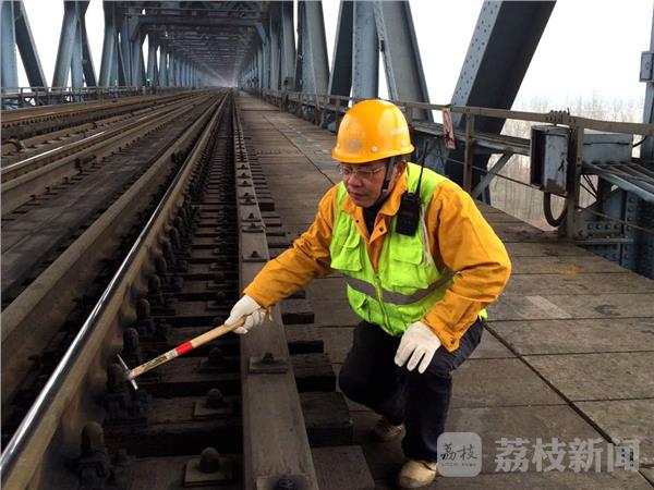 “这个锈蚀点有点严重,需要清除重新做油漆。咳、咳……”1月28日,在离江面30多米的南京长江大桥铁路桥面上巡守的刘为保被猛烈的江风灌得直咳嗽。54岁的刘为保是上海铁路局南京桥工段一名巡线工,今年春运是他陪伴南京长江大桥的第 37 个春运,“大桥就是一个浏览历史的窗口。从中,你会看到许多别致的风景。”刘为保说。