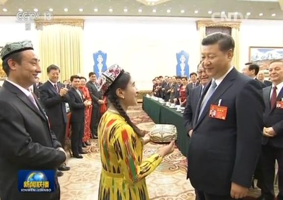习近平:维吾尔族谚语说得好,“事成于和睦,力量生于团结。”中国这56个民族,你看,多么稳定地安居乐业,而且相互之间又是这么的和谐。刚才我听到了锡伯族代表谈到的当年戍边到那里,长时间地在那里聚居繁衍生息。这个确实要看到我们正确的民族政策,我们要继续秉持它。