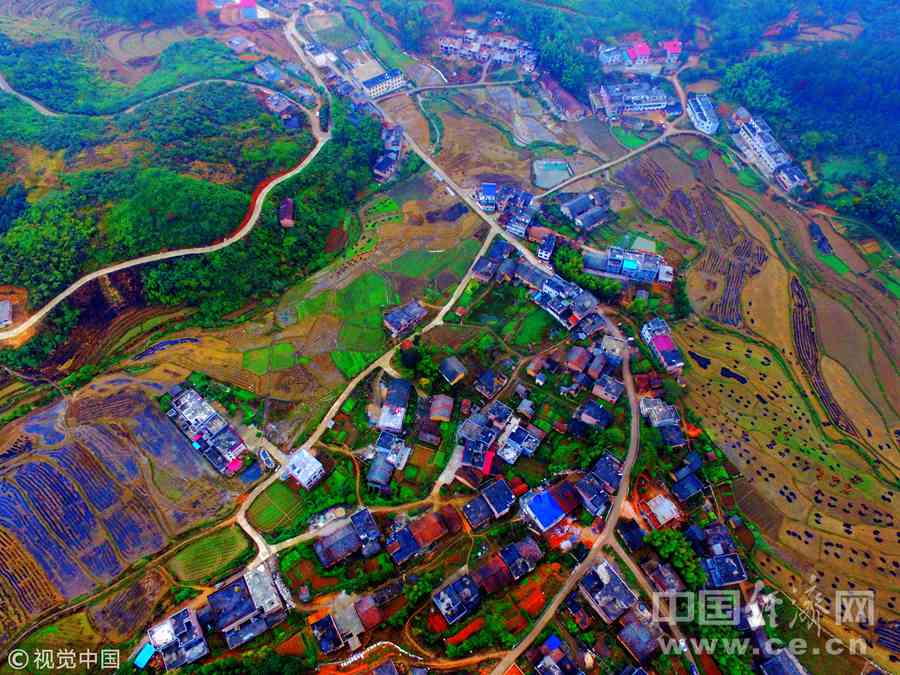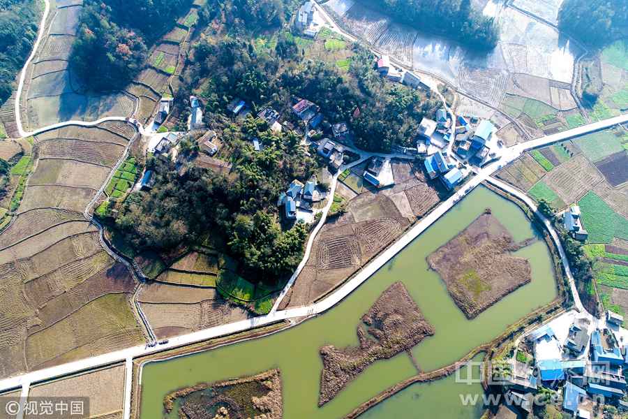 2017年11月20日,在湖南省郴州市安仁县华王乡消湾村航拍的新建通村水泥公路。图片作者:贺茂峰
