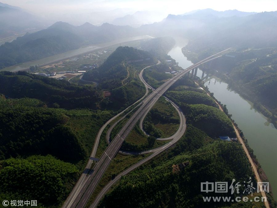 2016年6月2日,贵州黔东南,航拍的厦蓉高速贵州省榕江县境内风光。图片作者:王炳真