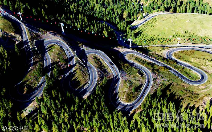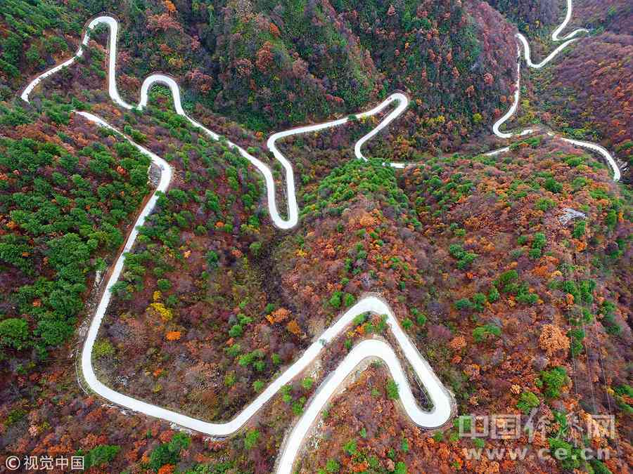 2015年11月18日,陕西汉中,陕西汉中留坝山中景色。俯瞰盘山公路,像谁画的画一样。图片作者:视觉中国
