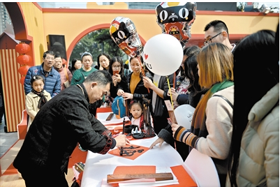 正佳广场天猫年货大街可领取春联,吸引了不少街坊。