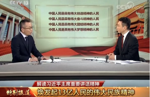 人民是历史的创造者,人民是真正的英雄。 一个四分五裂的国家不可能发展进步。 有这样伟大的人民,有这样伟大的民族,有这样的伟大民族精神,是我们的骄傲。 让全体中国人民和中华儿女在实现中华民族伟大复兴的历史进程中共享幸福和荣光! 在这个民族大义和历史潮流面前,一切分裂祖国的行径和伎俩都是注定要失败的,都会受到人民的谴责和历史的惩罚! 我们伟大祖国的每一寸领土都绝对不能也绝对不可能从中国分割出去! 2018年3月17日,习近平主席在宪法宣誓时,左手抚按宪法,右手举拳,在人民代表面前,庄严宣誓。 作为人民领袖,习近平心中,“人民”二字是一种非常强烈、非常坚定的信仰。20日人大闭幕会上的这次讲话进一步焕发起13亿人民的伟大民族精神。 人民的实践是最丰富最生动的实践,人民中蕴藏着巨大的智慧和力量。2013年3月17日,习近平在十二届全国人大一次会议闭幕会上指出“实现中国梦必须弘扬中国精神”,中国精神是以爱国主义为核心的民族精神和以改革创新为核心的时代精神。五年后的2018年,习近平将时代精神深深融入到民族精神的历史长河和现实使命当中,浓缩在一起形成伟大的民族精神。 奋斗者的时代 奋斗者的宣言