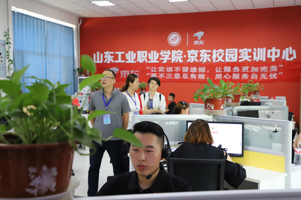 据介绍,“山东工业职业学院·京东校园实训中心"是学院与江苏京东信息技术有限公司的校企合作项目,该实训中心建筑面积300余平方米,包括实训中心、培训中心和会议中心,实训中心有66个座席,能实现呼叫中心的所有功能。该实训中心2017年7月份开始建设,11月份正式投入运营。