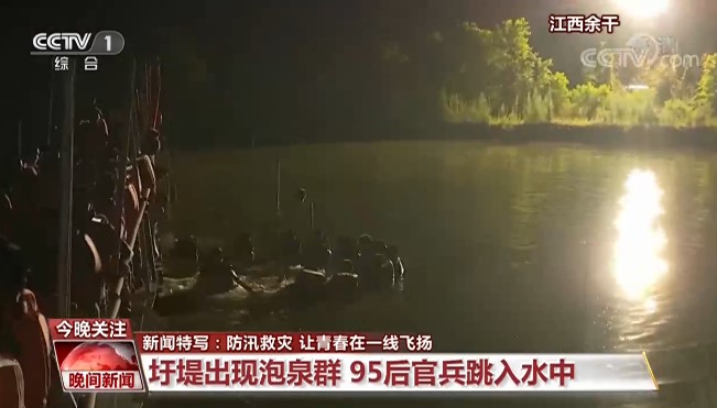 7月16日晚10点,江西余干的信瑞联圩东塘段堤脚的水塘里发现3处泡泉。73集团军某旅25人党员突击队跳入齐肩的水塘中抢险,即使呛了好几口浑浊的池塘水,也没有停下,这25人全部都是95后的年轻人。
