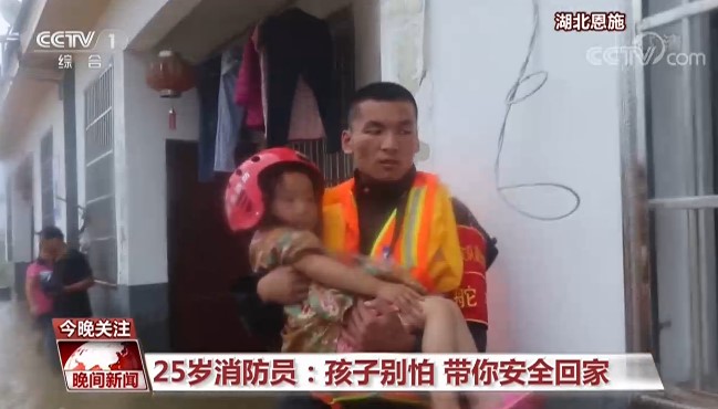 湖北省恩施州咸丰县消防救援大队三级消防士 张士伦:抱着小女孩的途中发现她有些紧张、有些害怕,我就主动跟她聊天,问她上没上学、学习情况怎么样、想不想坐消防车,就这样你一言我一语很快就到了安置点。