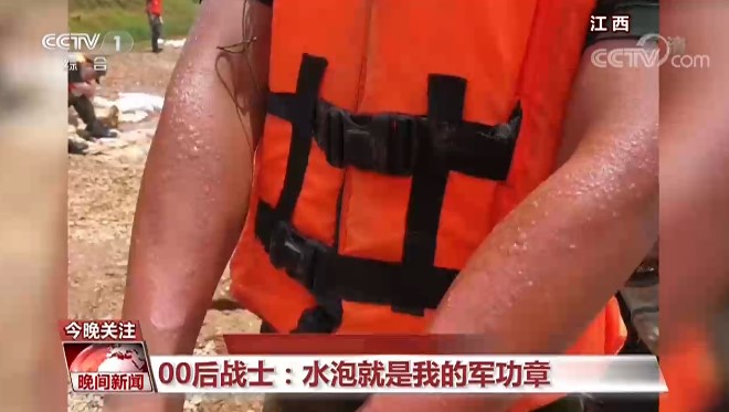 武警江西总队上饶支队机动中队战士 王子浩:我觉得手上这些伤口,这些水泡,是我的军功章。在我的军旅生涯能抗一次洪,是十分光荣的。