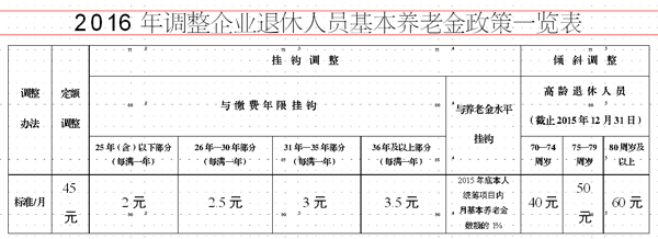 自2016年1月1日起,将为全市2015年12月31日前已按规定办理退休手续且按月领取基本养老金的退休(退职)人员增加基本养老金。