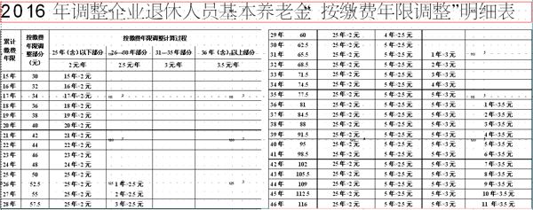一是与缴费年限挂钩:缴费年限在25年(含)以下的部分,每满一年,每月增加2元;缴费年限26年至30年部分,每满一年,每月增加2.5元;缴费年限31年至35年部分,每满一年,每月增加3元;缴费年限36年(含)以上的部分,每满一年,每月增加3.5元。具体计算公式:每人每月按缴费年限调整的养老金=(25年及以下的年限)×2元+(26年至30年期间的年限)×2.5元+(31年至35年期间的年限)×3元+(36年及以上的年限) ×3.5元。