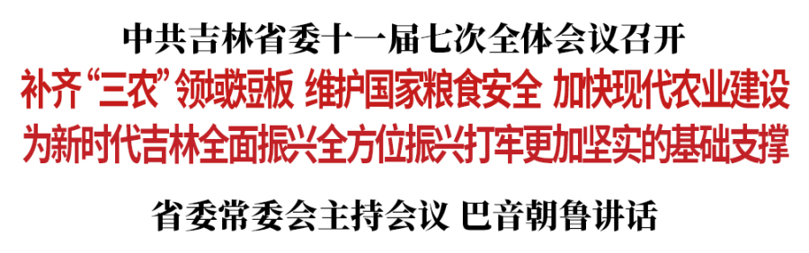 全会强调,加快吉林现代农业建设,必须全面实施黑土地保护利用工程、农村三次产业融合发展工程、高标准农田建设工程、优势特色产业壮大工程、数字农业和科技创新工程、农产品品牌建设工程、畜牧业优质安全提升工程、农村人居环境整治工程、新型经营主体培育工程和农村基础设施建设工程,到“十四五”末期,粮食总产量登上800亿斤新台阶,保护性耕作技术实施面积达到4000万亩,建成高标准农田5000万亩,农产品加工业销售收入达到4000亿元,农作物耕种收综合机械化水平达到90%以上,努力在全国率先实现农业现代化。