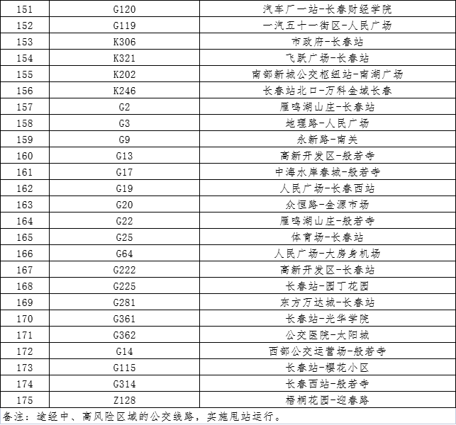 (一)恢复运营主城区175条公交线路(详见附表),不含跨区公交、郊线公交;首末班车发车时间执行原运营时间;恢复运营的公交线路将根据实际客流需求适时调整行车间隔;中、高风险区域实施甩站运行;运行期间开窗通风,不得开启空调。