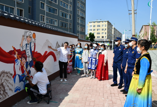 “墙绘内容是社区和延边大学美术学院文创团队合作,从设计到完成历时一个月。文创团队创始人是学院老师张文学,绘画团队成员大多是聋哑人。张文学对团队成员们进行了近10年的培训,大家的画功都非常棒。”丹英社区书记助理王珑告诉记者,主题墙所在位置曾经是辖区的卫生死角,道路泥泞,为了改善居民生活环境,提升各族群众幸福感,社区动员多方力量,将此处进行了多番改造。