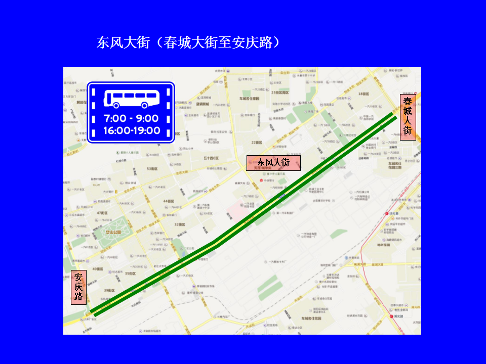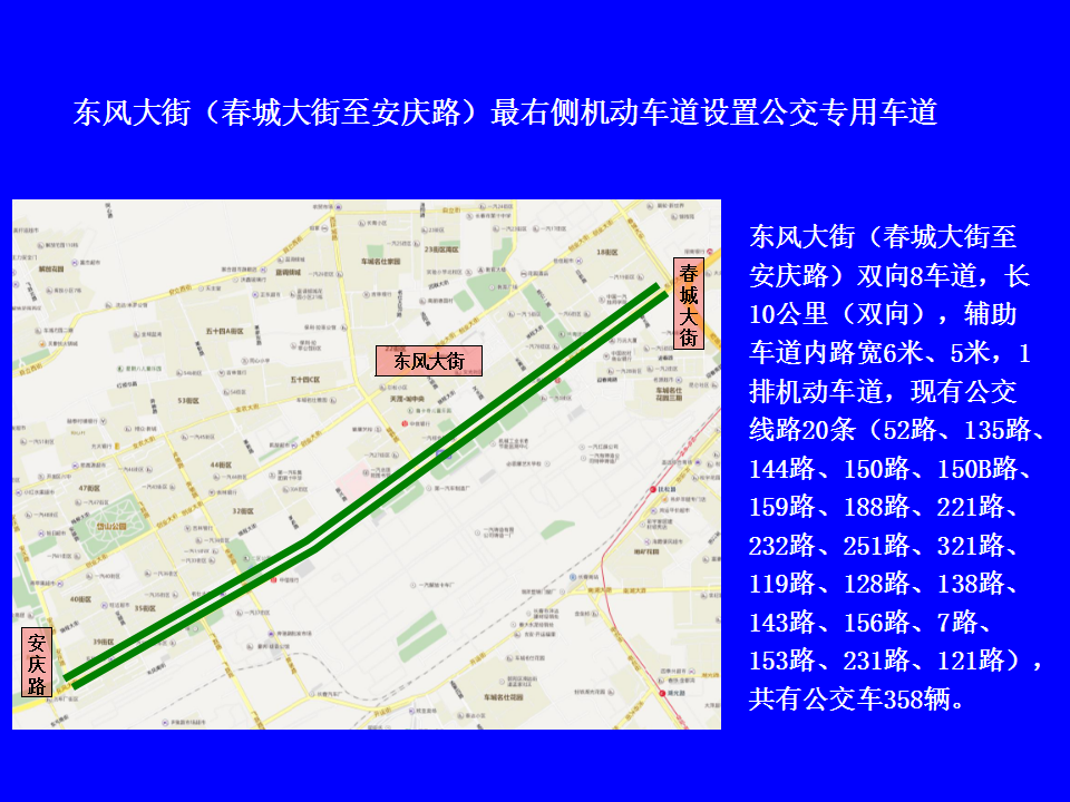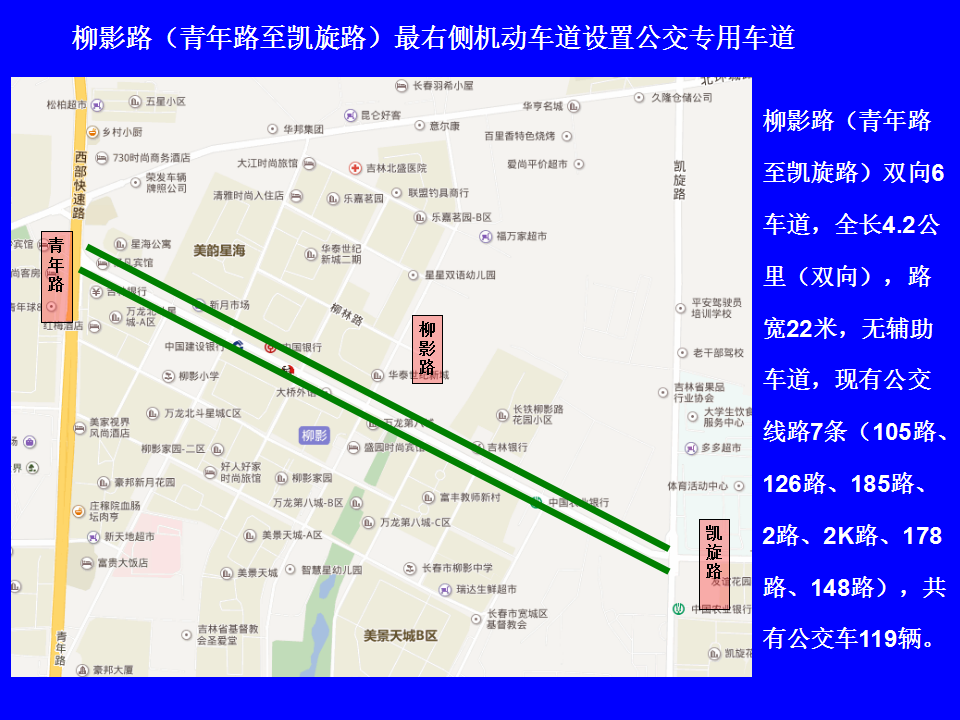东风大街(春城大街至安庆路)、基隆街(西安广场至新月路)、柳影路(青年路至凯旋路)最右侧机动车道设置为公交车专用车道。