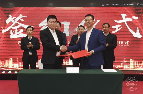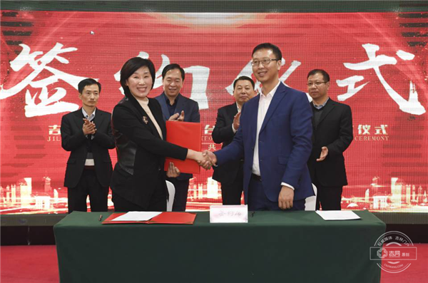 吉良优品董事长张弘和吉林省电子商务云平台总经理闫少军在战略合作协议上签字。
