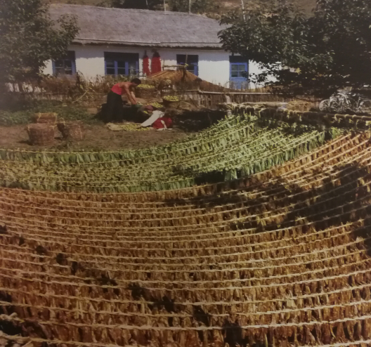 咱们先看这个,我在1978年在龙井拍摄的《丰收的农家院》,实行家庭联产承包责任制,农民有了自主权。在这个朝鲜族农家的小院里,一片丰收的景象。看这个小院里,里面晒着烤烟,白墙上挂着红辣椒,夫妻两个人正在收水果。虽然这只是镜头里的小院,却能体现出改革开放后农村逐渐富饶的景象。