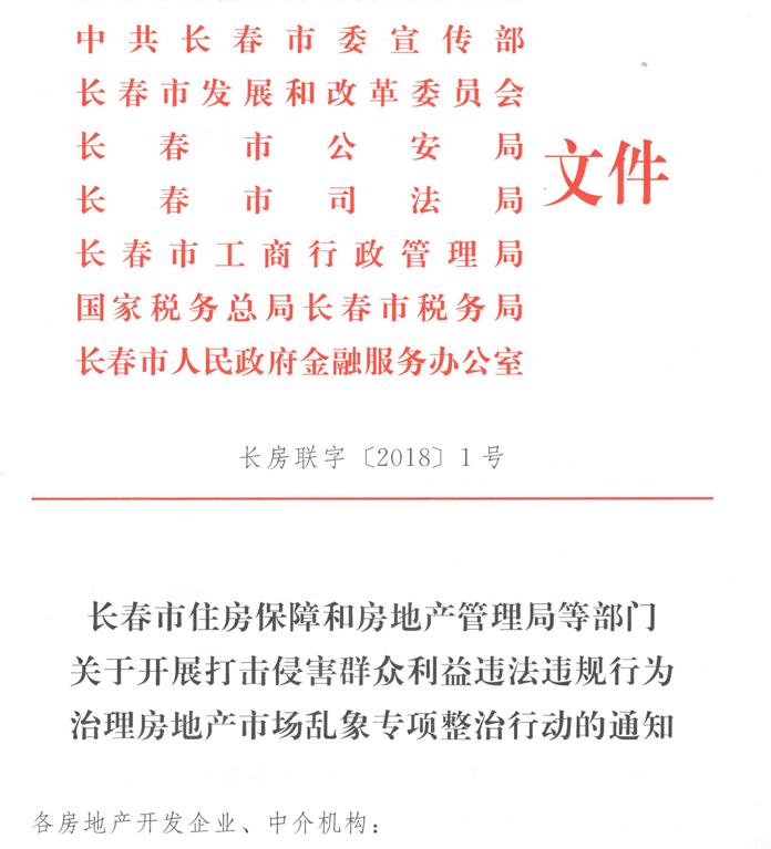 17日,中国吉林网、吉刻APP记者从长春市住房保障和房地产管理局获悉,为进一步整治房地产秩序,合理引导市场预期,坚决遏制房价上涨,保障群众合法权益,维护社会和谐稳定,长春市住房保障和房地产管理局联合公安等多个部门,在长春市范围内开展房地产市场专项整治行动。