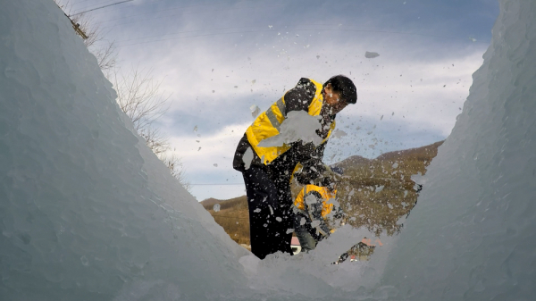 在作业时,职工们抡起尖镐,甩开膀子,奋力刨起道床上的积冰。镐尖下落,冰花四溅,细小的冰块、冰碴打在脸上,钻进脖子里,他们全然不顾。