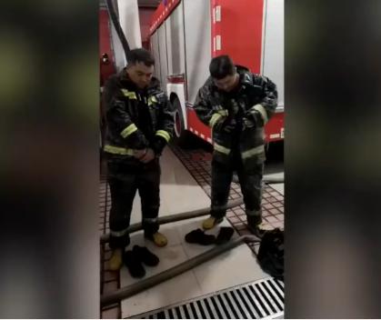 “天特别冷,风也很大,免不了救火过程当中水喷洒在身上,打湿了身上的灭火防护服,归队时他们的灭火防护服被冻得僵直,行动十分不便,队友笑称这是中队里的两只企鹅,走路憨态可掬的样子被拍摄成一段视频,在网上流传。”白城市消防救援支队安广中队指挥员曹继川说。