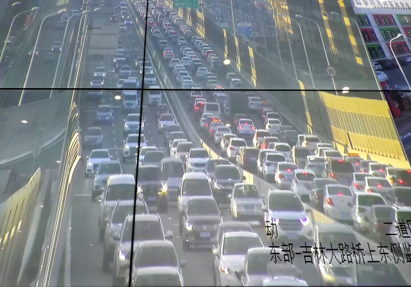 7时30分许,早高峰基本已经平稳度过,而上学高峰过去之后,可能会消化一部分车流。但是日常的交通拥堵路段主要为快速路,在长春公安交通指挥中心的大屏幕上可以看到,东部快速路、南部快速路上车流都比较大。另外一些重要的交通节点,比如说人民广场、新民广场的车流量相对较大。