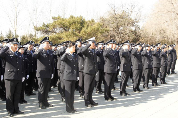 在公安英烈广场,姜宏亮常务副局长等领导和300名新入警的青年民警整齐列队,向公安烈士墓碑敬献花篮、默哀,在领誓人的带领下重温入警誓词。激昂、振奋的誓言在公安英烈广场久久回荡。