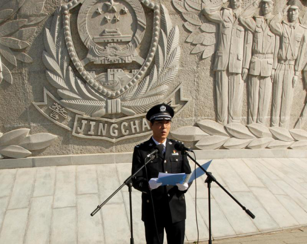 姜宏亮常务副局长在致辞中指出,在这座广场的石碑上,铭刻的是所有长春公安因公牺牲的英烈的名字。他们用自己宝贵的生命和鲜血铸写了长春公安辉煌的历史,他们是长春公安的骄傲!英魂虽逝,精神犹存,他们的事迹永远载在史册,永远活在我们的心中。作为青年民警,是长春公安的新生力量,希望你们牢记这一天、这一刻,不忘英烈,继承和发扬他们不屈不挠、不怕牺牲的精神,忠于誓言、践行誓言,把对党忠诚、服务人民、执法公正、纪律严明的总要求融入血脉,铸入警魂,争做一名优秀的人民警察,续写长春公安的辉煌篇章!