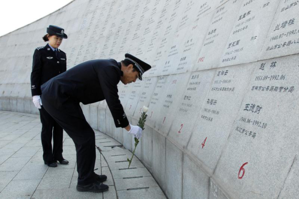 随后,领导和民警代表依次将鲜花敬献在公安英烈的墓碑前,一朵朵素洁的鲜花在风中微微摆动,寄托着广大公安民警对先烈的无限哀思,表达着传承英烈精神、忠诚公安事业的坚定决心。