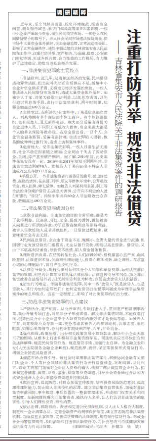 中国吉林网注意到,2011年12月29日《人民法院报》曾刊发《注重打防并举 规范非法借贷—— 吉林省集安市人民法院关于非法集资案件的调研报告》,课题组成员有三人,排在第一位的是祁明杰,时任集安市人民法院党组书记、院长。