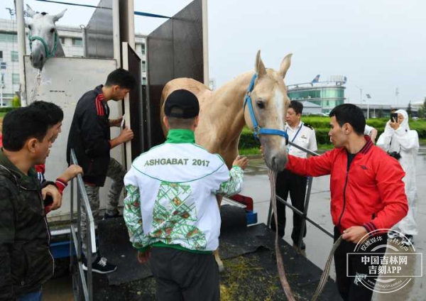 6月14日,在经历了5500公里的长途跋涉,近8个小时的飞行后,来自土库曼斯坦的13匹阿哈尔捷金马(俗称汗血宝马)顺利抵达长春龙嘉机场,即将开始它们为期三个月的演出。