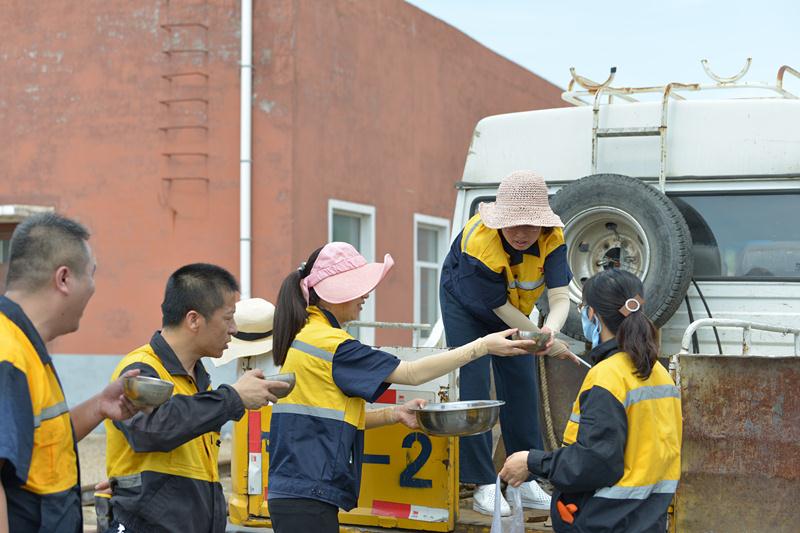 当天夜里,天空下起了小雨,天气异常闷热,职工们又开启了“汗蒸”模式。