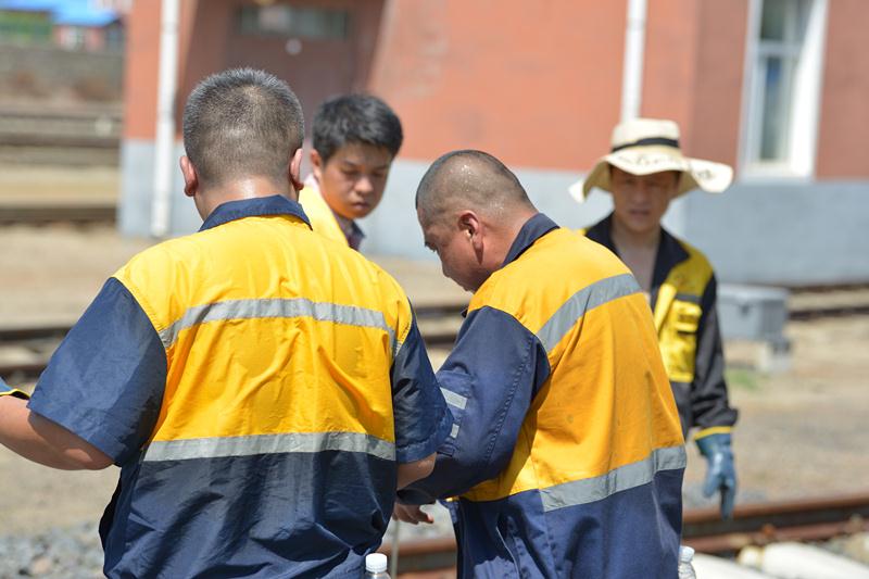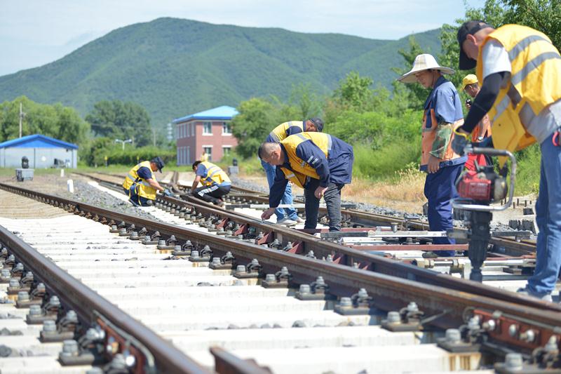 7月29日,气温达33℃,又是一个闷热的“桑拿天”,层层热浪弥漫在钢轨上方。在中国铁路沈阳局集团有限公司图们站站内,几名身穿“黄马甲”的图们工务段职工在炎炎烈日下精准维修铁路线路,坚守在铁路运输第一线。