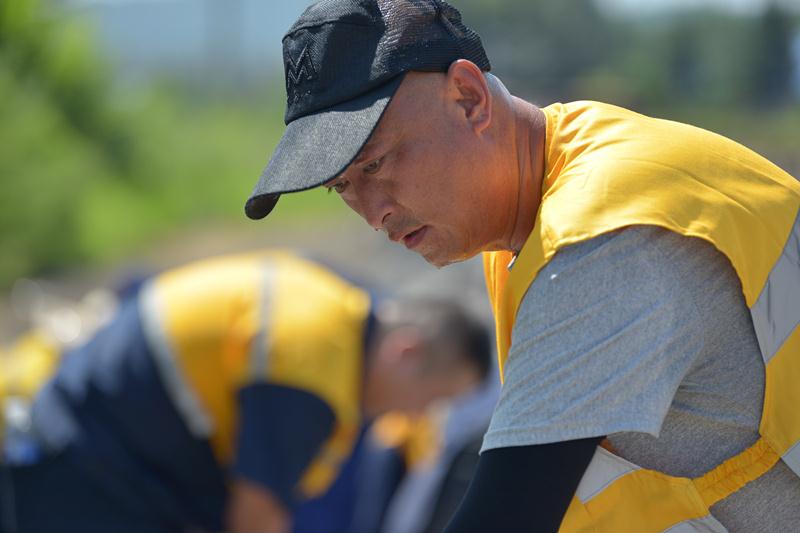 “老张,你歇一会,我来使用威克捣固镐。”职工柳森一边说一边接过威克捣固镐,作业不一会,衣服就粘在了前胸和后背,像是被水洗了一样,但他全然不顾,只是擦了擦额头上的汗水,继续投入在工作中。