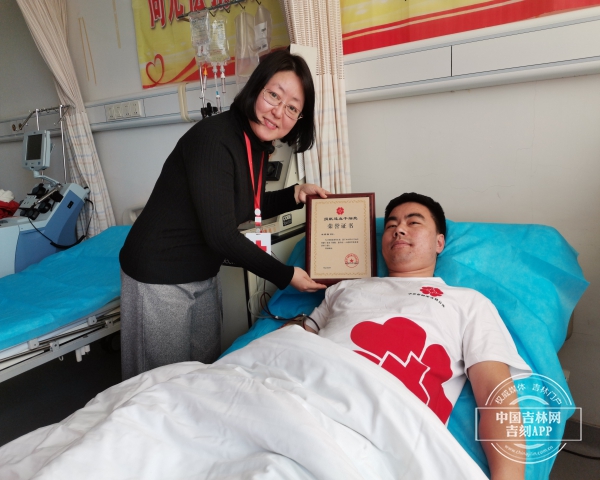 2019年12月4日,在第34个国际志愿者日即将到来之际,吉林省第82例(全国第9217例)造血干细胞捐献者朱孝福,在吉林大学第一医院进行了造血干细胞采集。中华骨髓库吉林分库负责人刘艳丽赶赴医院慰问,并向他颁发了荣誉证书。