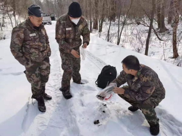 随后,黄泥河保护区开始对东北虎经常活动的区域进行排查。2月7日,在黄泥河保护区的都陵林场再次发现东北虎的足迹,并收集到东北虎的粪便。从足迹的新鲜程度来看,这只虎行走的时间是在2月5日之前,由此判定,这只东北虎于春节期间就开始在保护区内活动了。此后,保护区的工作人员又在马鹿沟林场的道路上发现东北虎往返的足迹。目前,从跟踪情况来看,这只东北虎还在保护区内活动。