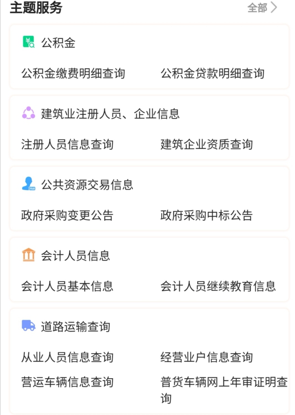 目前,在吉事办小程序中可查询高速路况信息、吉林省不动产登记网上预审进度、出入境业务查询、工程招标公告、社保保障卡信息、公积金信息、公共资源交易信息、会计人员信息、建筑业注册人员、企业信息、道路运输信息等,让广大办事人信息随时查,服务在线办,网友更可对服务态度、办事效率、政策诚信等进行投诉、参与监督。