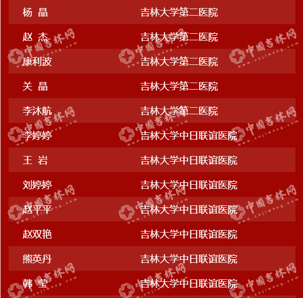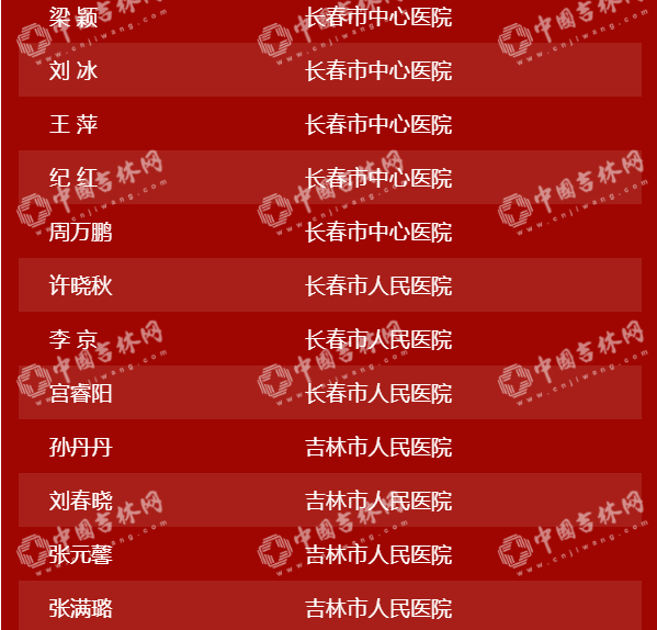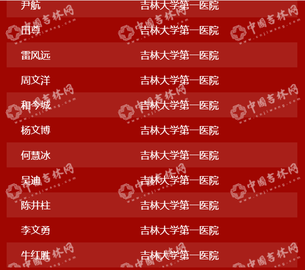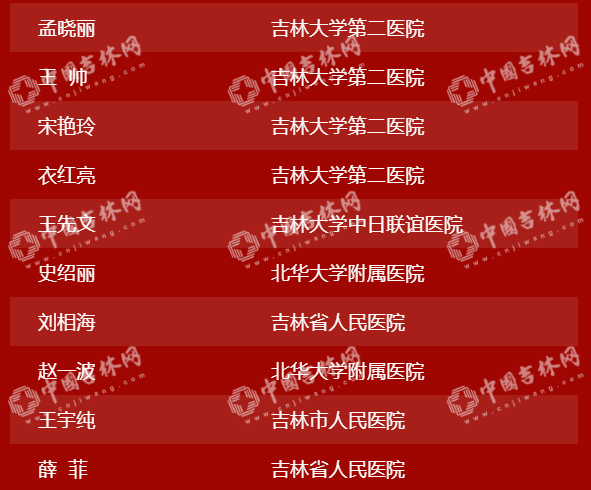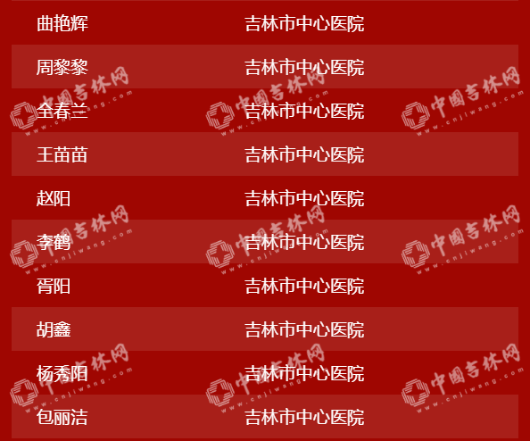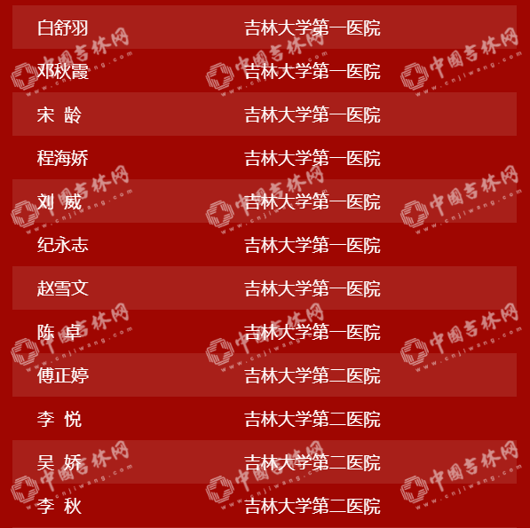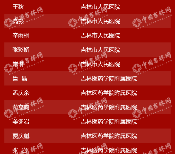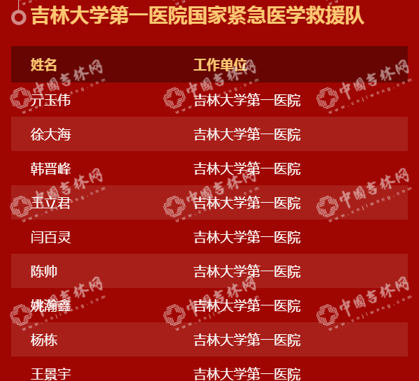 医疗队中吉林大学第一医院34人,吉林大学第二医院27人,吉林大学中日联谊医院26人,吉林省人民医院20人,吉林省一汽总医院12人,吉林队11人(吉林医药学院附属医院6人,北华大学附属医院3人,吉林市中心医院1人,吉林市人民医院1人),延边队5人(延边大学3人,长春市中心医院1人,通化市中心医院1人)。