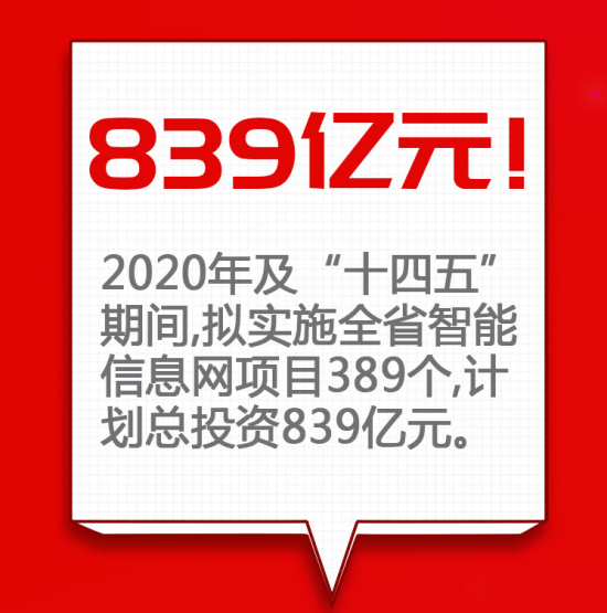 2020年及“十四五”期间,拟实施全省智能信息网项目389个,计划总投资839亿元。