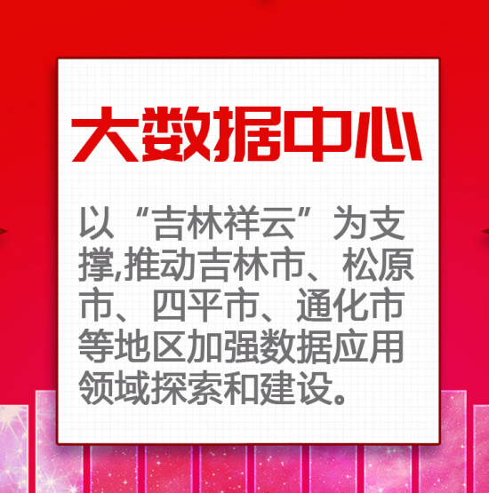 以“吉林祥云”为支撑,推动吉林市、松原市、四平市、通化市等地区加强数据应用领域探索和建设。