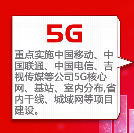 重点实施中国移动、中国联通、中国电信、吉视传媒等公司5G核心网、基站、室内分布,省内干线、城域网等项目建设。