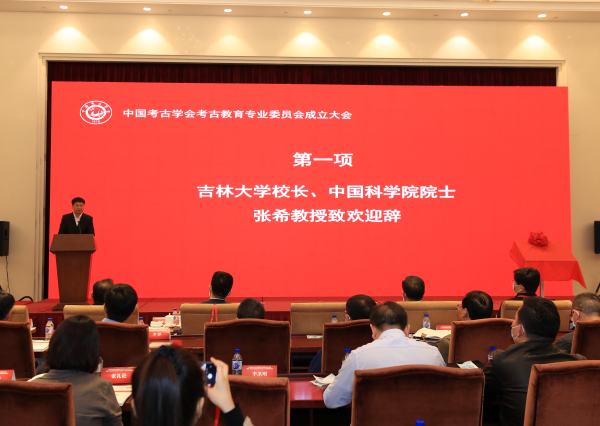 中国考古学会考古教育专业委员会成立大会暨第一届全国高校新时代考古学人才培养高端论坛5月16日在长春举行。吉林大学党委书记姜治莹,校长张希院士,国家文物局人事司司长朱晓东,吉林省教育厅副厅长、省委教育工委副书记孙长智,国家文物局文物保护与考古司调研员胡传耸,及北京大学考古文博学院副院长沈睿文等近百名来自全国各高校和相关科研院所考古文博专业的学科负责人、专家学者代表等参加了成立大会。大会由吉林大学常务副校长郑伟涛主持。