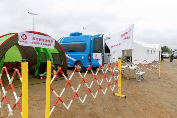 演练模拟我省长春市某区域连降暴雨,引发洪涝灾害,多个村庄房屋严重损毁和倒塌,有群众被洪水围困,造成人员伤亡,属地政府启动Ⅲ级响应,当地医疗机构损毁严重,请求省级医疗支援。省卫生健康委按照省防汛指挥部要求,紧急调动国家紧急医学救援队(吉林队)、省级紧急医学救援队、卫生防疫队,火速赶赴灾区,开展医疗救援、卫生防疫等应急处置工作。