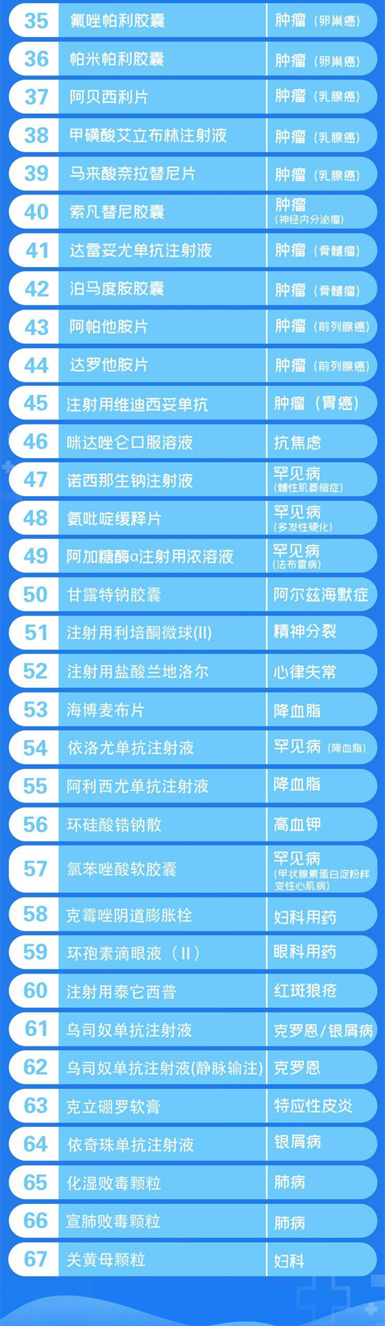 据了解,2021年国家医保药品目录新纳入药品精准补齐肿瘤、慢性病、抗感染、罕见病、妇女儿童等用药需求,共涉及21个临床组别。患者受益面广泛,群众用药的可及性和公平性进一步提高。