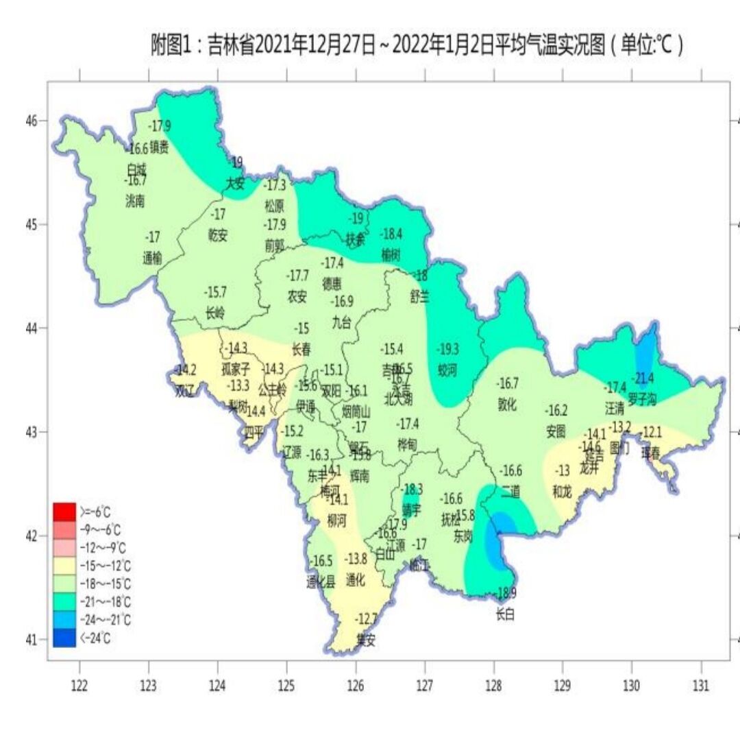 3日,中国吉林网获悉,上周(2021年12月27日-2022年1月2日),吉林省气温稍低。全省平均气温-16.1℃,较常年低1.4℃。各地区较常年低0.8℃~2.6℃。
