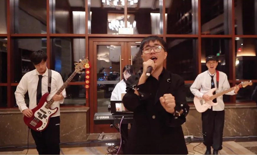 在景区另一处跨年活动场地——瑞士酒店的红酒吧,狂欢派对别开生面。瑞士风情、美味甜点、醇香美酒、东北烤串、劲爆DJ,在这温暖的房间,东西方文化在碰撞中交融,美食刺激着味蕾,音乐波动着神经,游客们纷纷享受着这温暖又惬意的时刻。