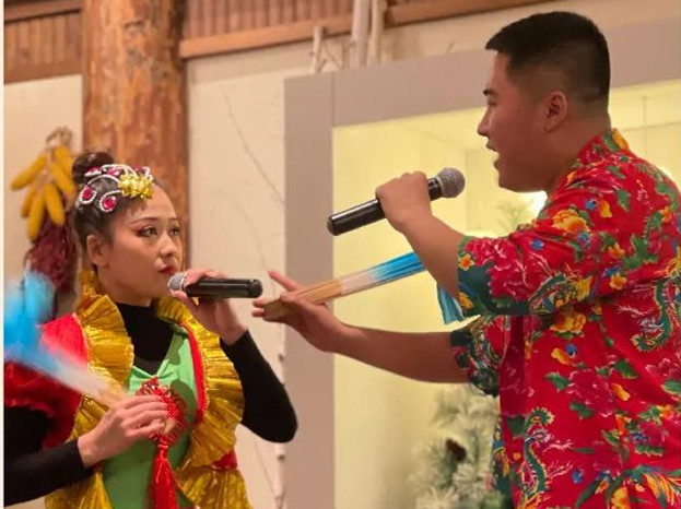 此次“瑞士之夜”跨年狂欢派对共有两个会场。在原乡客栈猎户酒馆,传统的东北民居和地域文化,让来到这里的游客体验到原滋原味儿的特色民俗。院内的篝火熊熊燃烧,室内大红大绿的秧歌服饰、幽默风趣的二人转、欢快优美的朝鲜族歌舞、淳朴精美的窗花剪纸、香甜酥脆的冰糖葫芦,把现场游客带到传统的东北节日氛围当中,“冰雪+民俗”的全新模式,让这里的冬天“红红火火”。