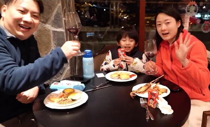 来自澳门的林东明小朋友和他的爸爸妈妈赶着2021年的末班车来到了鲁能胜地,从来没有到过长白山的他对这里产生了浓厚的兴趣。一家三口围坐在餐桌,品尝着美味的食物,欣赏舞台上DJ倾情表演,时不时跟着音律挥舞着双手,与其他游客一起在电音中感受跨年的热闹。