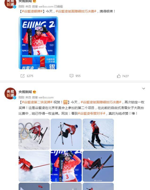 面对谷爱凌的出色发挥,赛后央视新闻也发文写道:这是谷爱凌北京冬奥会第二枚奖牌,看到谷爱凌夸赞对手,真的为她点赞。她创造了历史。